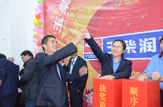 润滑油公司员工高兴领取玉柴集团60大庆纪念品